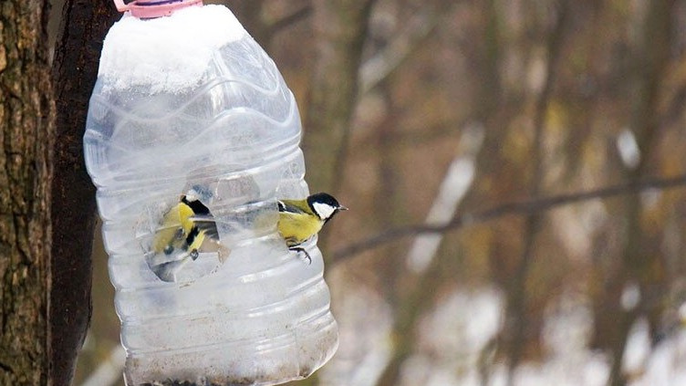 Биологический метод защиты растений предполагает создание благоприятных условий для естественных врагов вредителей — птиц и насекомых-опылителей. Из бутылок объёмом 1,5 литра изготавливаются простые и функциональные кормушки. На боковых стенках, на высоте 3 см от дна, вырезаются два симметричных отверстия диаметром 12 мм, через которые птицы будут иметь доступ к корму. Края отверстий обязательно обрабатываются наждачной бумагой или оплавляются для безопасности пернатых. Для защиты от осадков над кормушкой монтируется козырёк из верхней части другой бутылки.