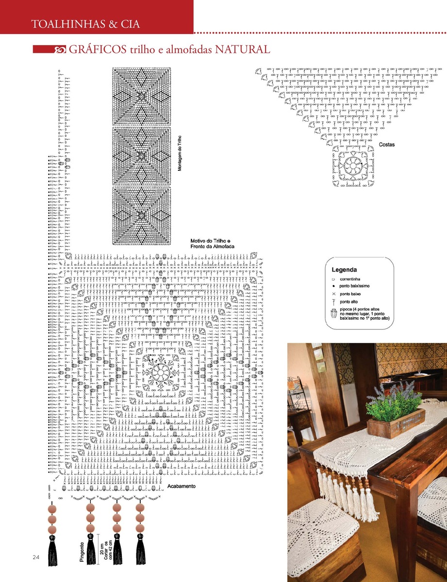 Я бы ещё украсила чехол для табурета, добавив кисточек. В целом, если использовать больше мотивов, вместо дорожки вполне можно связать полноценную скатерть. Поскольку мотив достаточно плотный, можно создать лёгкое покрывало, взяв нить потоньше, или, наоборот, толстый плед, если использовать более толстую пряжу и крупный крючок. Этот мотив — довольно интересный вариант для украшения дачного интерьера, например.