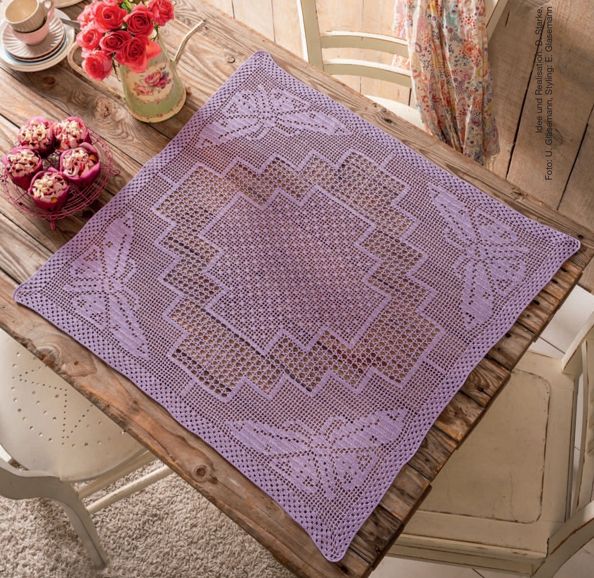 Из данного мотива можно связать как салфетку, так и скатерть, которая прекрасно украсит стол и интерьер. Надеюсь, эта подборка вдохновит вас на новые проекты и интересные интерьерные решения.