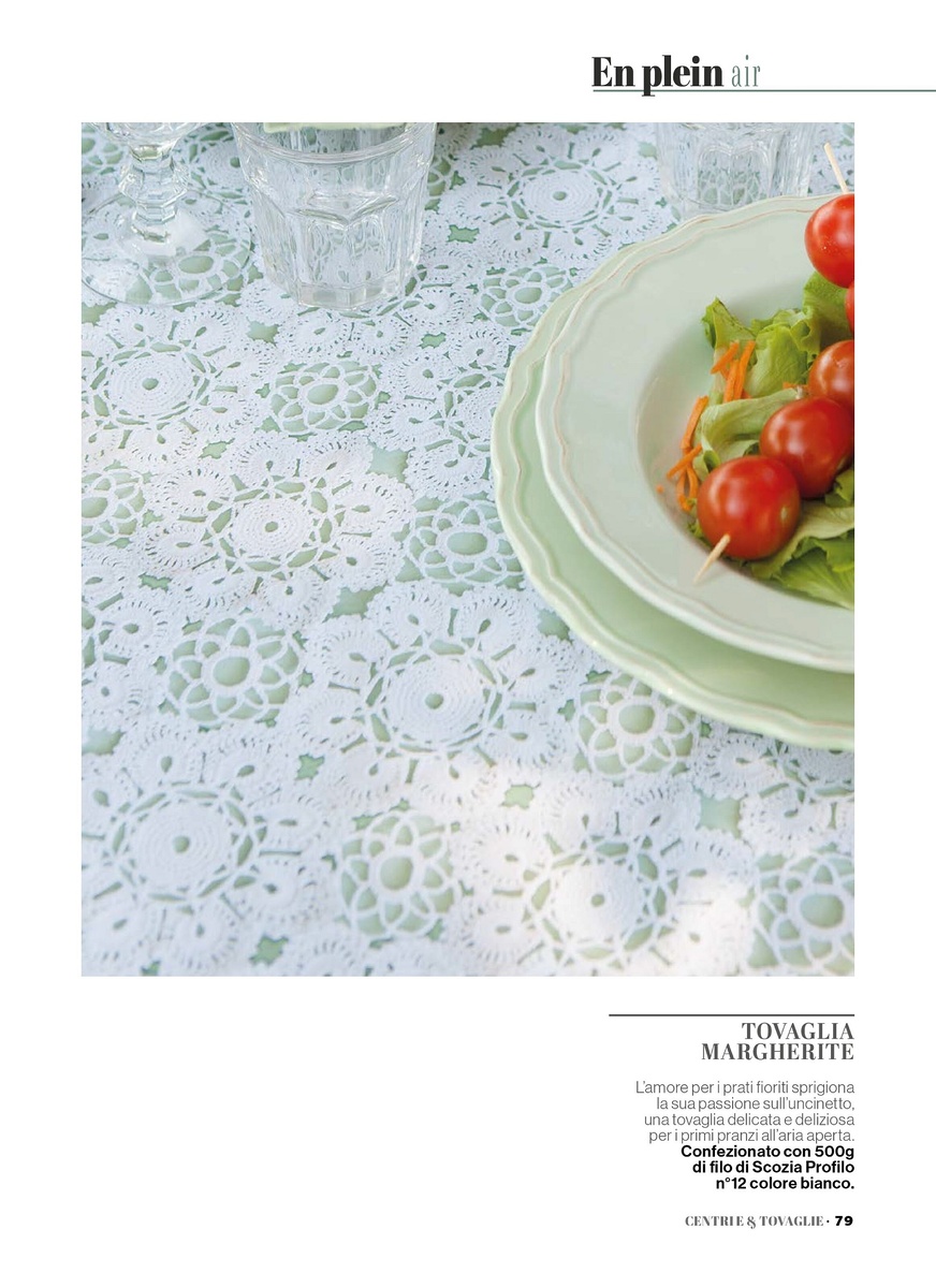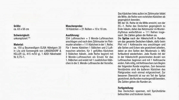 Следующий мотив — точнее, здесь уже два: один большего размера, другой маленький, который используется для соединения четырёх больших мотивов между собой. Эти элементы можно использовать для вязания разных изделий; в данном случае это скатерть.