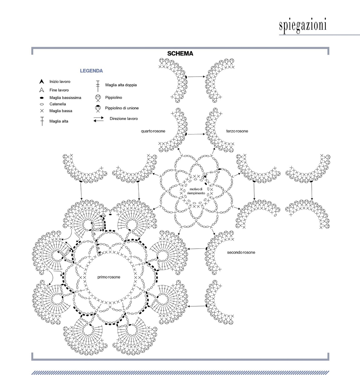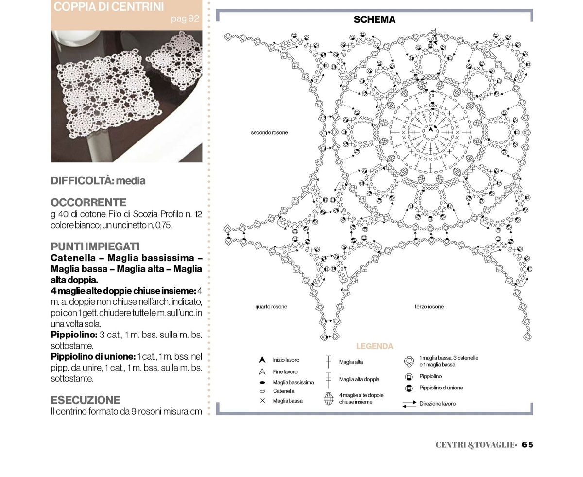 Обратите внимание: в схеме нет центральной части большого мотива, но она, судя по фото, вяжется просто столбиками без накида. Соответственно, несколько этих рядов несложно будет связать, либо можно использовать центр, серединку мотива из другого изделия.